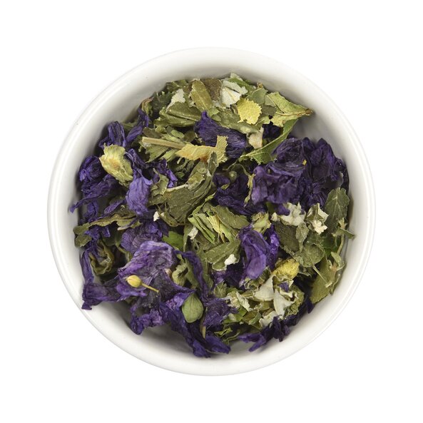 Meduňka*, Sléz nať*, Malina list*, Máta kadeřavá*, Lípa květ*, Černý bez květ*, Chrpa květ*