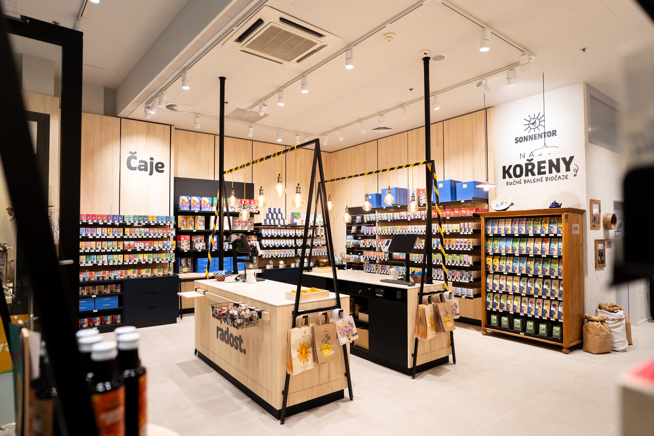 Čistý jednoduchý vzhled, kterému dominují přírodní materiály, nechá vyniknout rozmanitost široké škály našich bioproduktů, v níž si každý najde svůj šálek čaje. Moderní design doplňují tradiční prvky jako selská skříň, které vzdávají hold našim kořenům: