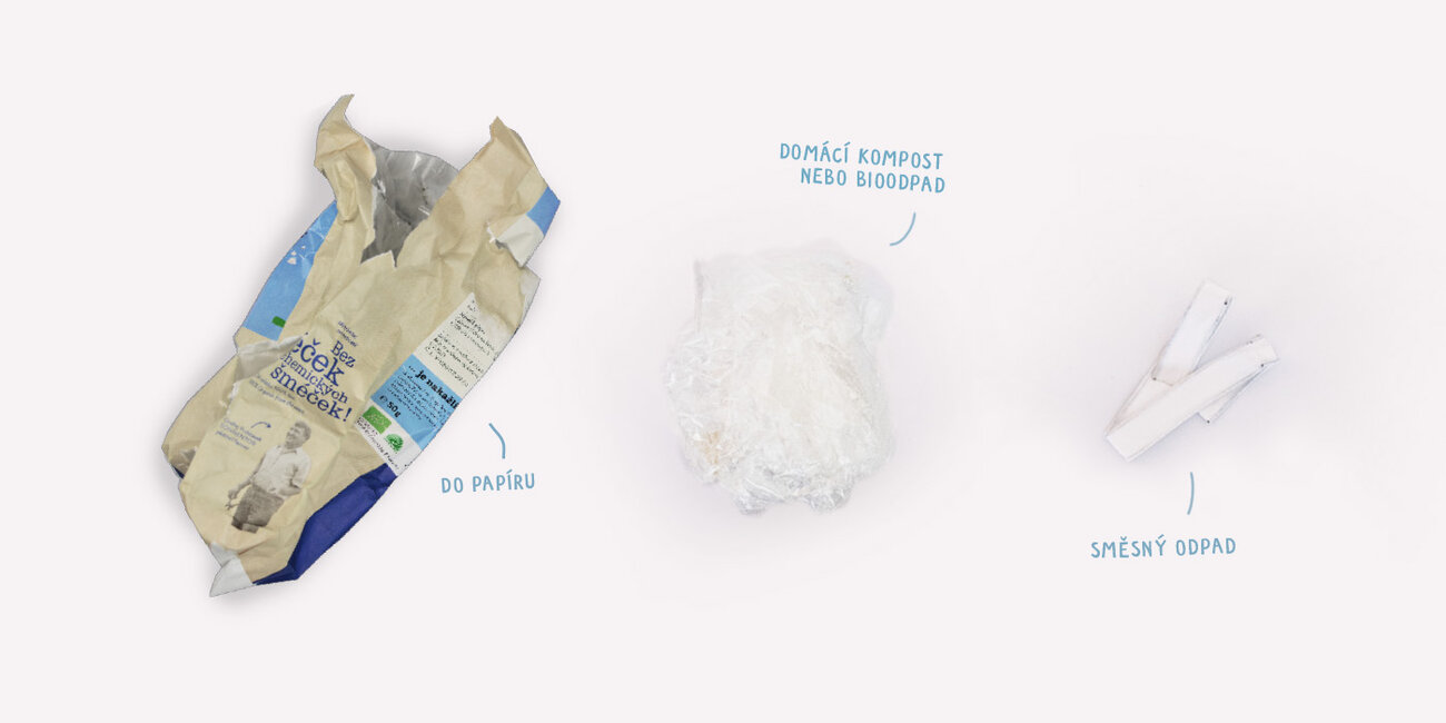 - Klipovací pásek: Uzavírací pásek je vyroben z kombinace papíru a tenkého kovového drátku. Patří sice do směsného odpadu, ale jeho největší síla je v opakovaném použití. Můžete s ním uzavírat další načaté sáčky ve vaší spíži.
