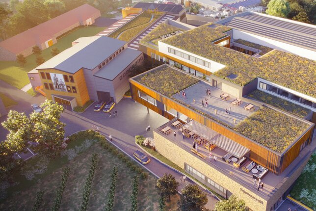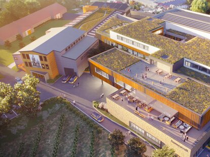 Nápad postavit v areálu SONNENTORU novou ekologickou budovu v nás zrál dlouho a celou stavbu jsme se rozhodli rozdělit na 2 etapy. První etapu jsme dokončili v roce 2023. Zahrnuje zpracování bylin, výrobu porcovaných a sypaných čajů, moderní sklady, administrativní zázemí a nový zážitkový exkurzní okruh. Ten je bezpochyb největším lákadlem pro návštěvníky. Vede tunelem přímo nad výrobou a přenese vás na farmu k našim pěstitelům, odhalíte tajemství zpracování bylin i koření. Druhou etapu plánujeme dokončit v roce 2026 a bude zahrnovat dostavbu rozšířeného návštěvnického centra Bylinkového ráje SONNENTOR, což představuje novou prodejnu, kavárnu, promítací sál i velkou bylinkovou zahradu.