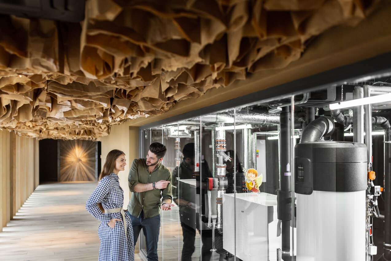 Otázku výtopu a chlazení jsme samozřejmě řešili i dříve. Halu Mlaty už dnes vytápíme bylinnými peletami vyrobenými z bylinného prachu a odpadu z výroby. Halu Akropolis vytápíme z 80 % zbytkovým teplem z balicích strojů a výroby stlačeného vzduchu. Tímto způsobem využíváme vnitřní tepelné zisky v maximální možné míře. Plynovým hořákem doplňujeme např. víkendy nebo pondělní rána, kdy se výroba teprve rozjíždí. Máme zkušenosti s předchozími budovami, že ochlazujeme řízeným větráním chladným nočním vzduchem. Provětráme je v noci a přes den udrží izolace s akumulační schopností teplotu pod 25 °C.