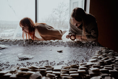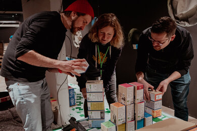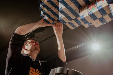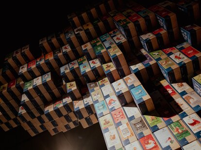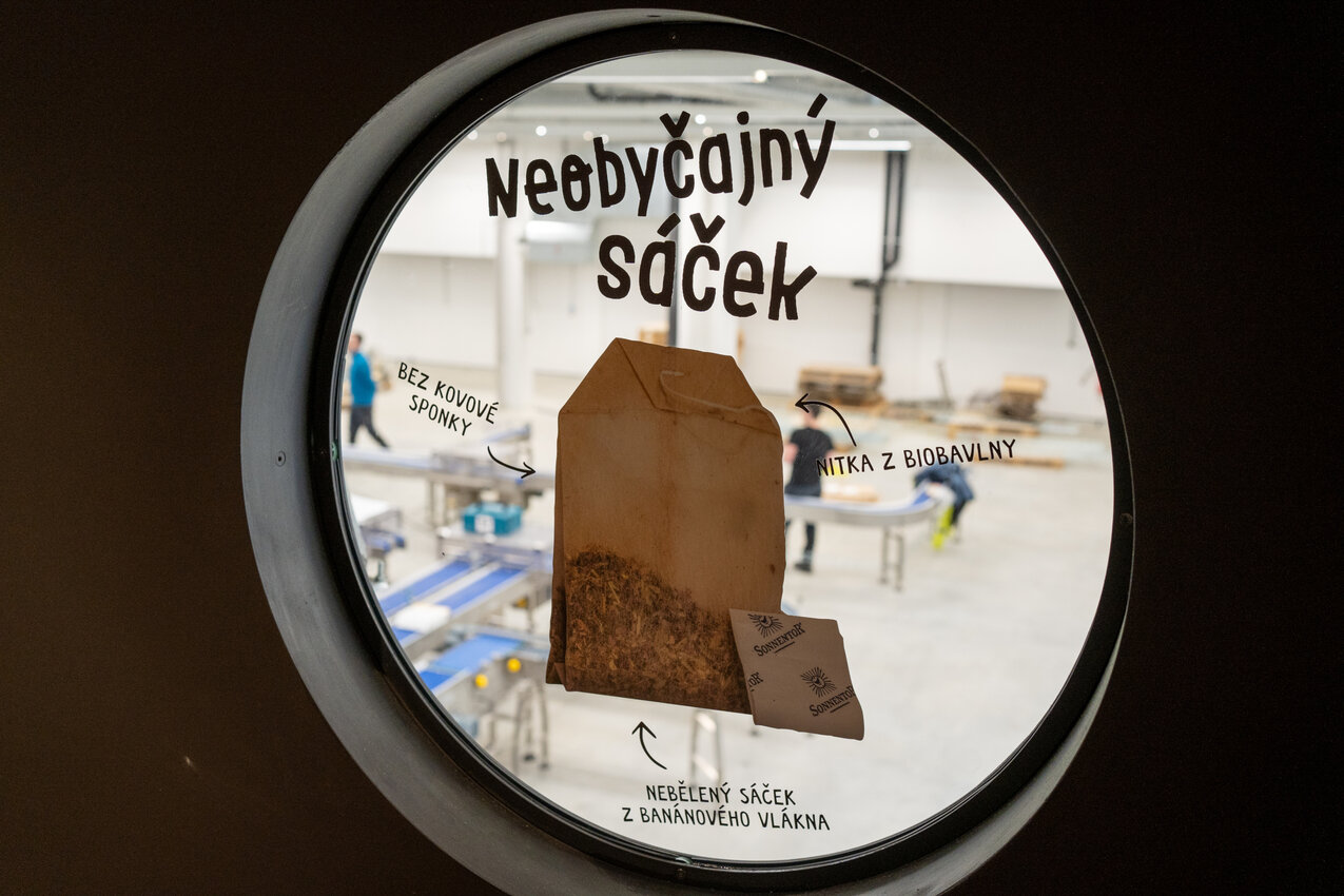 4. Před závěrem exkurze se návštěvníci seznámí s ekologickými obalovými materiály, které používáme. Exkurzní trasa se uzavírá výsledným produktem – vyrobenou krabičkou čajů. Rozmanitost našich ilustrací znázorňuje originálně koncipovaná stěna z čajových krabiček, která se postupně modeluje do navazujícího sloupu.