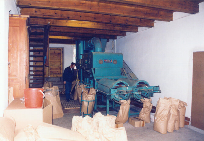 Strojů vhodných pro zpracování léčivých rostlin je jako šafránu, tak jsme v počátku hledali a přetvářeli, co bylo dostupné. Jako první to byl starý fukar na obilí, který jsme předělali na aspiratér, tolik nezbytný pro šetrné zpracování a odprášení bylin. Kvalita surovin byla totiž vždy na prvním místě. Ten aspiratér máme dodnes a je k vidění jako cenný artefakt ve Velkých Hostěrádkách, které leží kousek od Čejkovic.