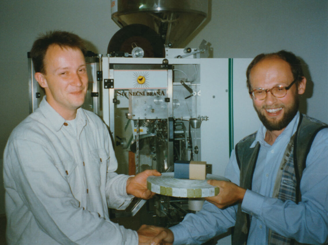 Při balení sypaných čajů nám vznikal určitý podíl jemnější frakce vykoupených bylin, který jsme dávali stranou a hledali jsme pro něj další využití. Řešení přišlo v podobě stroje na balení nálevových sáčků.