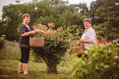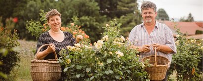 Evka Kubišová pro nás od samého začátku pěstuje růže a dodává nám voňavé okvětní plátky všech barev. Nejraději má růže pomerančové a žluté, svou podmanivou vůní a velikostí květu totiž potěší každé oko i duši. V krásné zahradě hned vedle jejich domu pěstuje také růžové nebo rudé růže. Celkem se jedná něco kolem 120 keříků.
