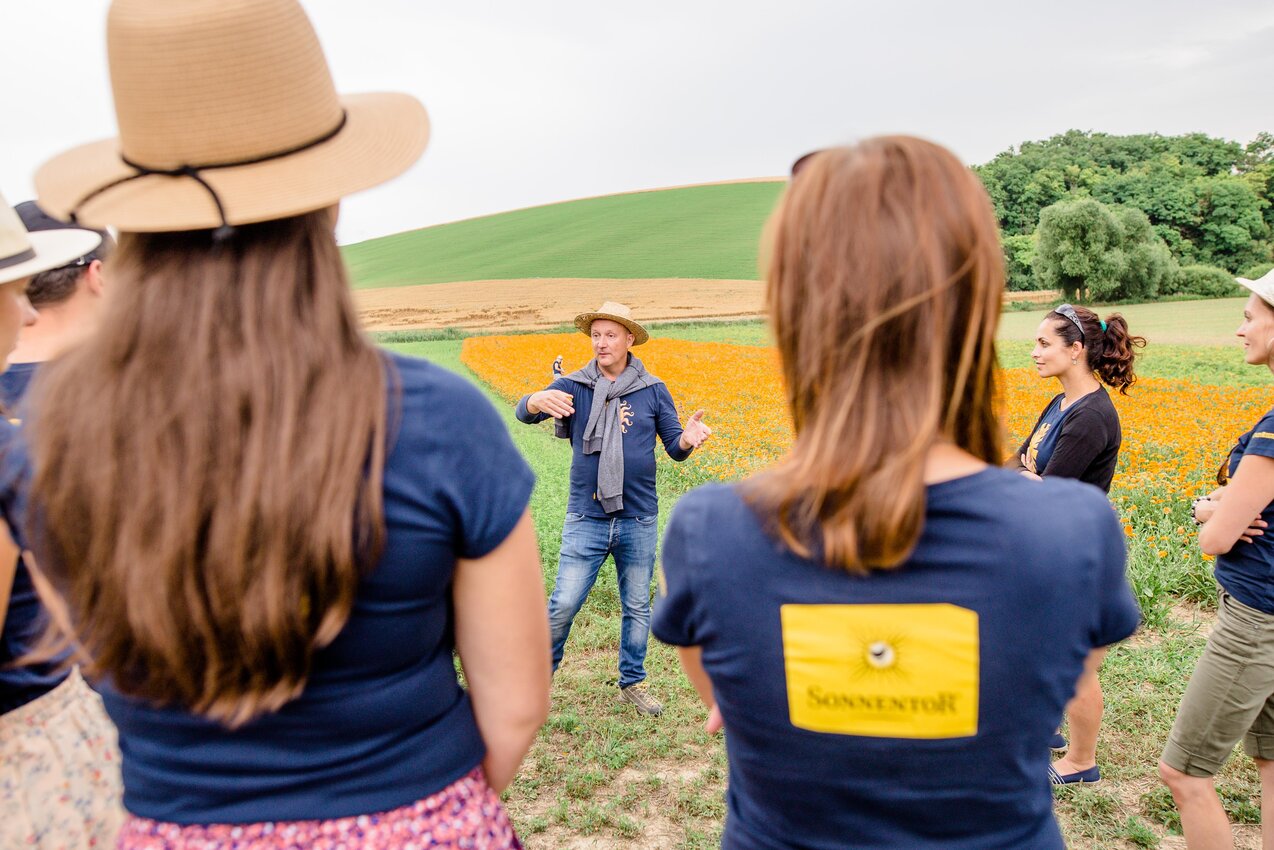 Společnost Sonnentor se do projektu aktivně zapojila pronájmem jednoho hektaru půdy, na kterém ukázkově pěstuje několik druhů léčivých rostlin. Největší výměra je věnována měsíčku, který je pěstován zejména na bio osivo pro potřeby našich biopěstitelů. Dále jsou zde malé porosty meduňky lékařské, máty peprné, chrpy a třapatky nachové, na kterých se prakticky zkouší nové trendy v zemědělství. Sklizeň a sušení bylin probíhá se zapojením veřejnosti při tradičním Bylinkobraní a z těchto bylinek v Sonnentoru vzniká originální čaj s názvem Pohodář.