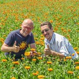 Náš partner Tomislav zde pěstuje oblíbené heřmánkové květy.