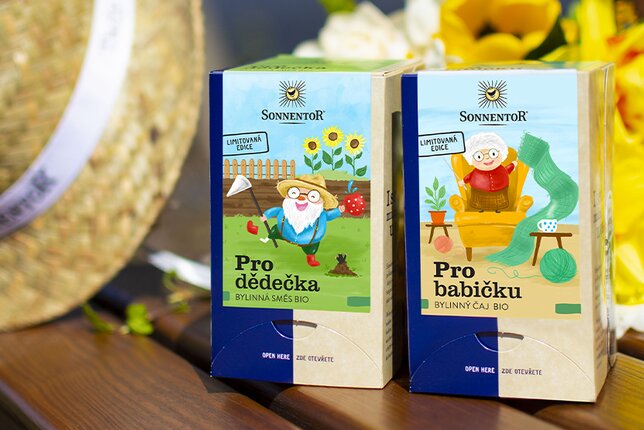 Pro všechny babičky a dědečky jsme přichystali limitované edice bylinných směsí. Aby si babička mohla odpočinout u šálku dobrého čaje z meduňky a šípku a aby dědeček po celém dnu našel duševní klid se směsí máty, chmele a levandule.