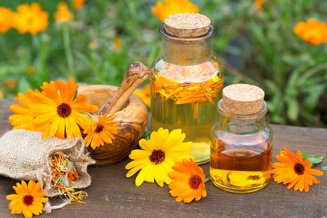 Nejprve necháme měsíček a aloe vera macerovat v lihu po dobu minimálně 72 hodin. Po uplynutí této doby líh přecedíme tak, abychom ho zbavili květů měsíčku a dužiny z aloe vera. Květy a aloe můžeme vyhodit. Do přecezeného lihu přidáme peroxid vodíku a éterické oleje, které mají také dezinfekční a antibakteriální účinky. V tuto chvíli máme hotovo. Vzniklý roztok stačí přelít do malého rozprašovače. Pokud nemáme přístup k tekoucí vodě a mýdlu, např. na cestách, můžeme tento prostředek použít jako dezinfekci.
