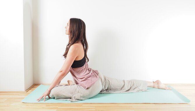 Pozice holuba vyrovnává hormony ve vaječnících a činí vejcovody pružnými. Zpravidelňuje cyklus a uvolňuje naši mysl. Jemným otevíráním boků pouštíme pryč věci staré a osvobozujeme se pro ty nové. Uvolněte se. Užívejte si to.