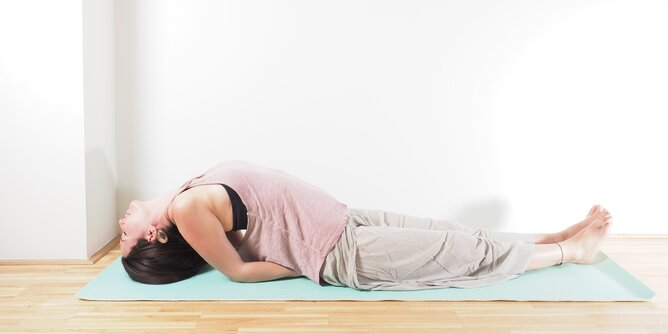 - Zůstaňte v pozici po dobu 5-8 nádechů, pak zvedněte hlavu při nádechu a položte se na podložku při výdechu.