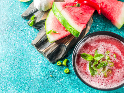 Dobré studené polévky vykouzlíte především z těch druhů zeleniny, které obsahují hodně vody: okurky, rajčata, vodní meloun. Polévkový základ pak můžete doladit dalším druhem zeleniny, ovoce nebo výraznými bylinami, napříkladem petrželkou, libečkem, koprem, koriandrem, majoránkou, medvědím česnekem, citronovou trávou, estragonem nebo pažitkou.