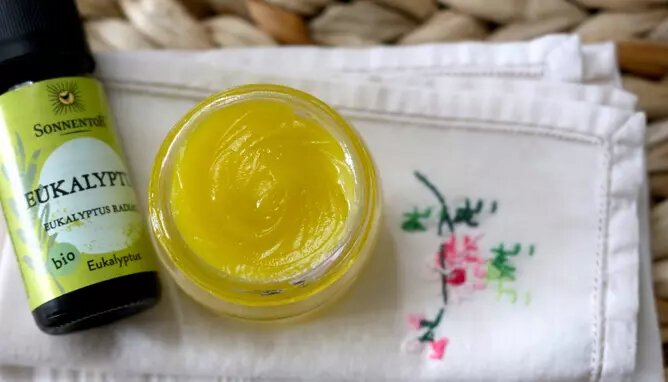 Na rozdíl od kupovaných produktů neobsahuje tento balzám žádné parafíny ani syntetické chemické přísady. Navíc krásně voní po čerstvých bylinkách. Doma ho připravíte za pár minut. Éterické oleje z eukalyptu, čajovníku a máty peprné poskytnou tolik vytouženou úlevu v období nachlazení a kašle.