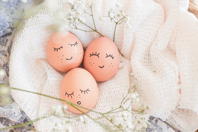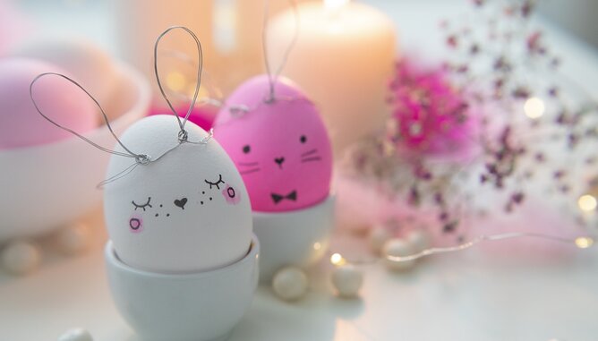 Zdobíte na poslední chvíli nebo máte rádi minimalismus? Vemte jednoduše tenký černý fix a vyfouknutým vajíčkům (ať už barveným nebo čistým) jednoduše nakreslete obličeje. Usadit je můžete do vystlané ošatky, stojánků na vejce nebo misky s osením. Pokud plánujete zajíčky, opatřete jim ještě z kousku drátku ouška.