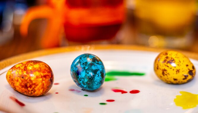 Voda musí mít pokojovou teplotu, takže ani moc teplá, ale ani příliš studená, jinak se vám kouzelný trik nepovede. Nalejte ji do misky a přidejte lak na nehty. Pomocí špejle pak lak na hladině různě rozprostřete. Postupně do vody s lakem namáčejte vajíčka. Lak na nehty se na ně krásně chytne a vytvoří na nich zajímavé obrazce. Vajíčka tak budou vypadat neotřele a originálně. Tohle barvení zaručeně pobaví děti i dospělé!