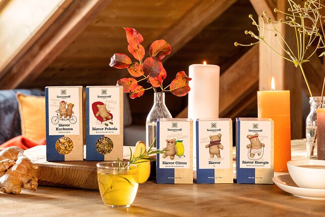 Zázvorovou řadu čajů poznáte v SONNENTORU na první pohled. Milý medvídkový design napovídá, že toto oblíbené koření umí pohladit, ale zároveň v sobě skrývá opravdovou sílu. Vedle „klasiky“ v podobě čistého zázvor či kombinace s citronem můžete také sáhnout po třech neotřelých směsích.