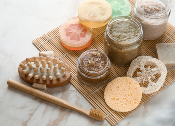 Připravit vaši kůži na peeling můžete například jemnou masáží přírodní žínkou z lufy, masážní rukavicí nebo dřevěným kartáčem. Kůže se začne prokrvovat a povzbudíte i lymfu, z těla se začnou vyplavovat škodlivé látky.