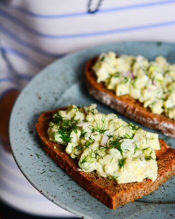 Chleba opečte v toasteru nebo na domácím grilu. Namažte pomazánkou (kterou můžete opět zlehka posypat kořením Umami) a posypte čerstvým koprem.