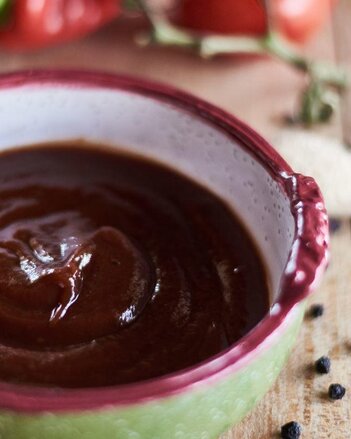 Rajský protlak, jablečné pyré a jablečný ocet přiveďte ve vyšším hrnci k varu. Vmíchejte koření a vařte zhruba hodinu. Pravidelně promíchávejte, aby se omáčka nepřipálila. Pokud chcete mít omáčku dokonale hladkou, propasírujte ji.