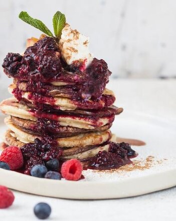 Černobílé lívance s ovocným přelivem