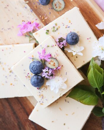 1. Za pečící papír vytáhněte z pekáče a nakrájejte na kostky (nejlépe to jde nožem namáčeným v horké vodě) a můžete servírovat. S ovocem nebo třeba kořením Síla květů mu to sluší nejvíce ♥