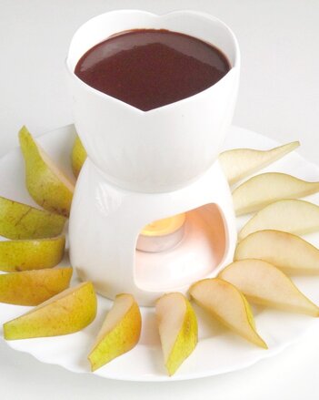 Rozmícháme dvě lžičky Perníkového koření, přivedeme k varu a přelijeme do nádoby na fondue a podáváme s nakrájeným ovocem.