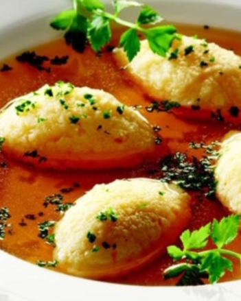 1. Všechny ingredience na nočky (včetně špetky muškátového oříšku a uzené soli) v míse zpracujte v kompaktní těsto a nechte jej alespoň 20 minut odpočinout v chladu. Poté dvěma lžícemi formujte trojhranné nočky, vkládejte je do vroucí vody a nechte je zhruba 10 minut (do vyplavání) táhnout. Během této doby nabydou zhruba na trojnásobek.
