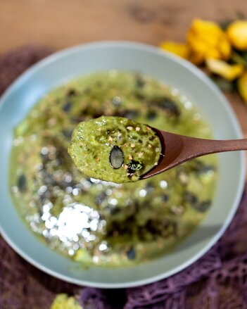 Doladíme dýňovým semínkem a posypeme Polévkovým kořením