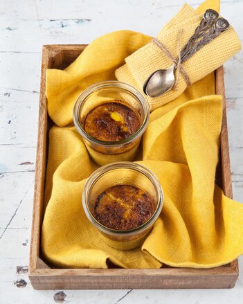 Směs naplňte do mističek na soufflé. Mističky umístěte na větší plech, který naplníte vodou. Pečte při 100 °C cca 30 minut.
