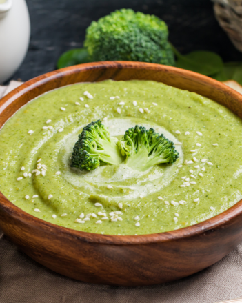 Polovinu brokolice a květáku rozmixujte, přidejte dýňová semínka, kešu oříšky a koření. Postupně přilévejte vodu, dokud nevznikne krémová polévková konzistence.