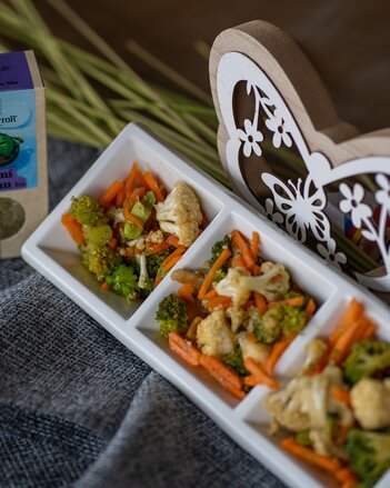 Mrkev nakrájíme na nudličky, brokolici a květák rozebereme na růžičky.