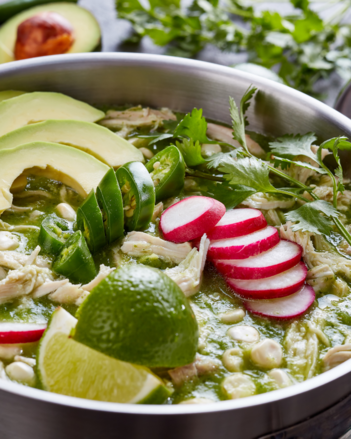 Servírujte v miskách a dozdobte plátky ředkvičky a jarní cibulky.