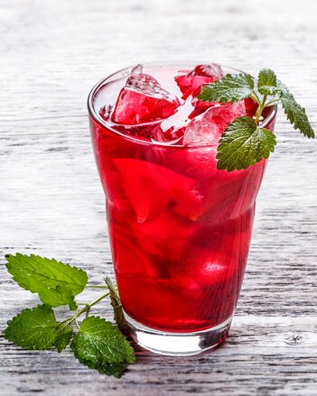 Vychlazený čaj smíchejte s jablečnou a citronovou šťávou a podávejte s kostkami ledu. Ozdobte čerstvými bylinkami.