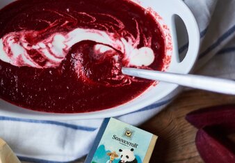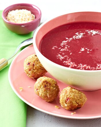 Polévka z červené řepy s quinoa knedlíčky