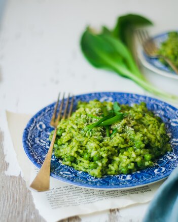 Svěží rizoto s hráškem a medvědím česnekem přivolá jaro.
