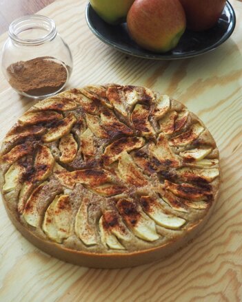Utopený jablečný koláč se skořicí