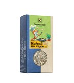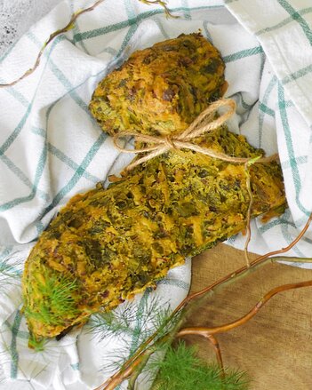 Tofu nastrouhejte, přidejte k němu omyté a nahrubo nasekané čerstvé býlí a také hrašku rozmíchanou ve vodě.