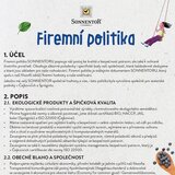 Firemní politika SONNENTORU popisuje náš postoj ke kvalitě a bezpečnosti potravin, ale také k ochraně životního prostředí. Obsahuje zákonné požadavky i specifické body naší společnosti, které každodenně sledujeme a které jsou základem pro naše rozhodování.