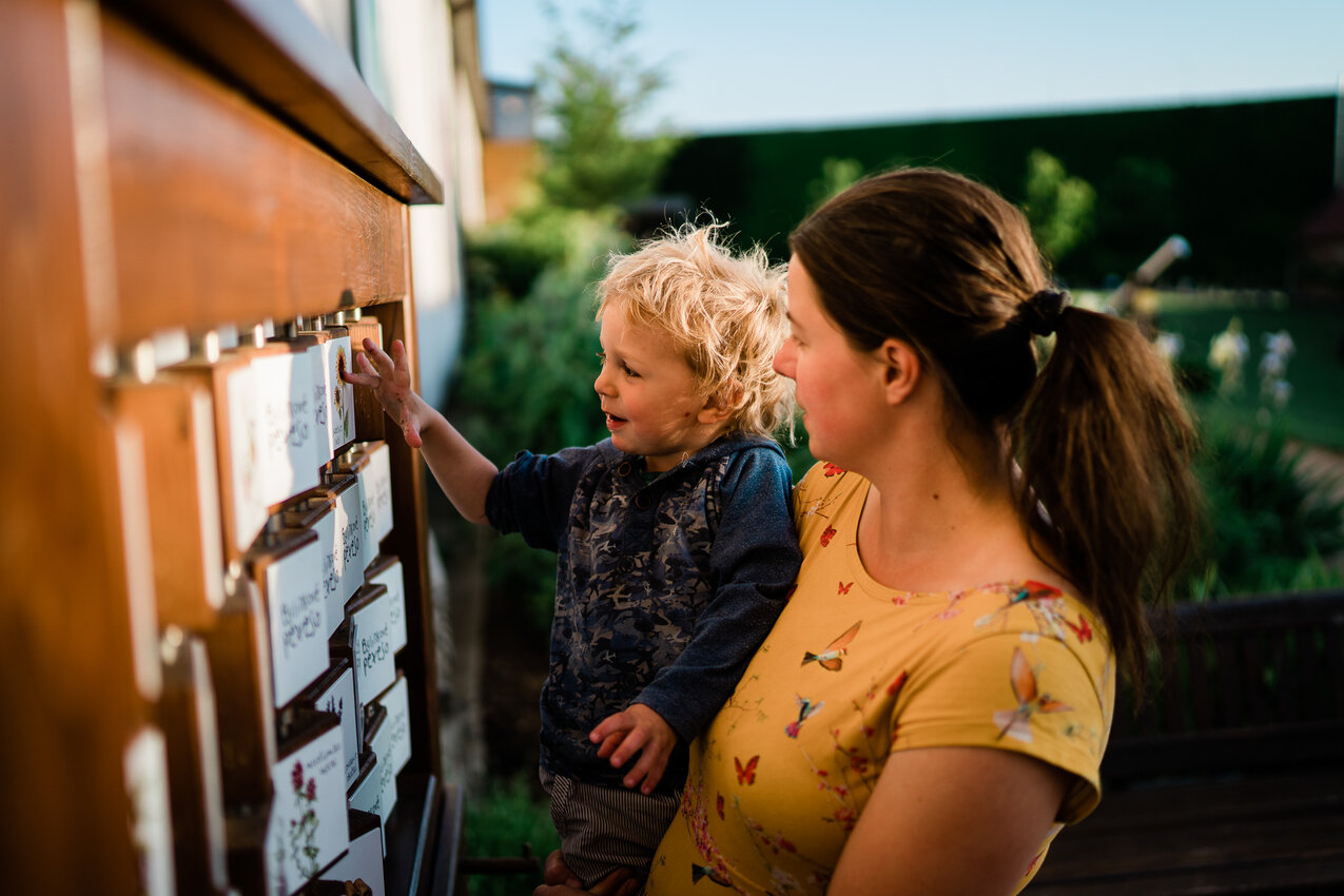 Kromě toho, že se děti v dětském naučném koutku seznámí s bylinkami prostřednictvím záhonků, můžou si své nabyté vědomosti ověřit na konci zahrádky prostřednictvím hracích panelů, které jim hravou formou ukážou, jak se zrodí čajový nálevový sáček od samotného vysetí semínka, na co je dobrá taková meduňka či šalvěj, nebo z čeho lze vyrobit parfém. Pro ty hravější je připraveno bylinkové pexeso a pro úplně nejmenší zahradníčky zalévací konvičky, kterými můžou bylinky v záhoncích zalévat.