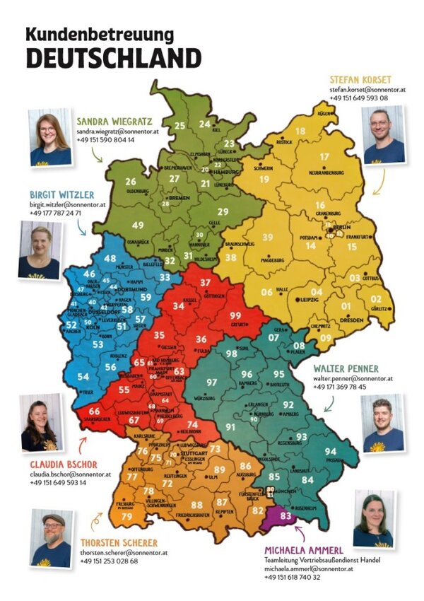 Du hast Anregungen oder Fragen zu unseren Produkten, die du persönlich besprechen möchtest? Dann stehen dir unsere Außendienstmitarbeiter in Deutschland und Österreich gerne zur Verfügung.