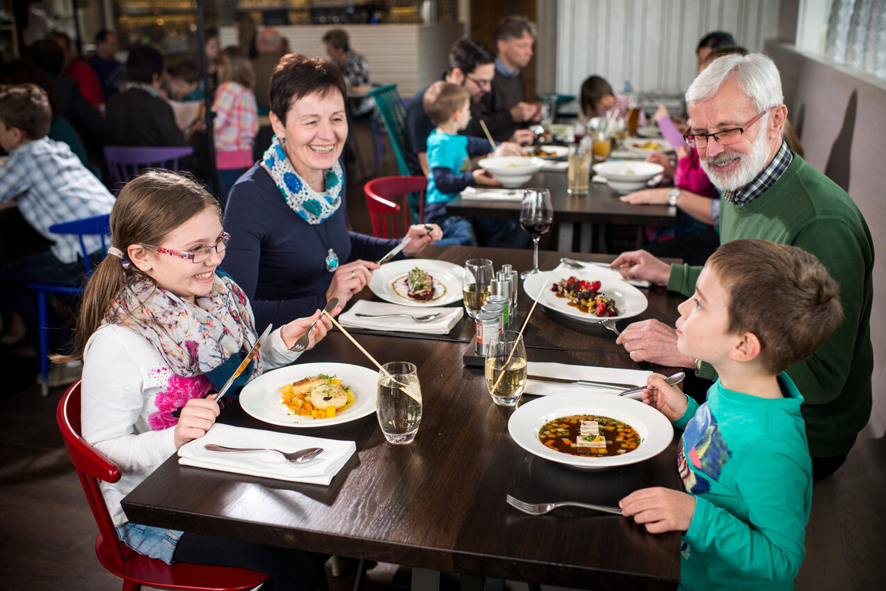 Familie beim Essen im Bio-Gasthaus Leibspies' | © Waldviertel Tourismus, Studio Kerschbaum