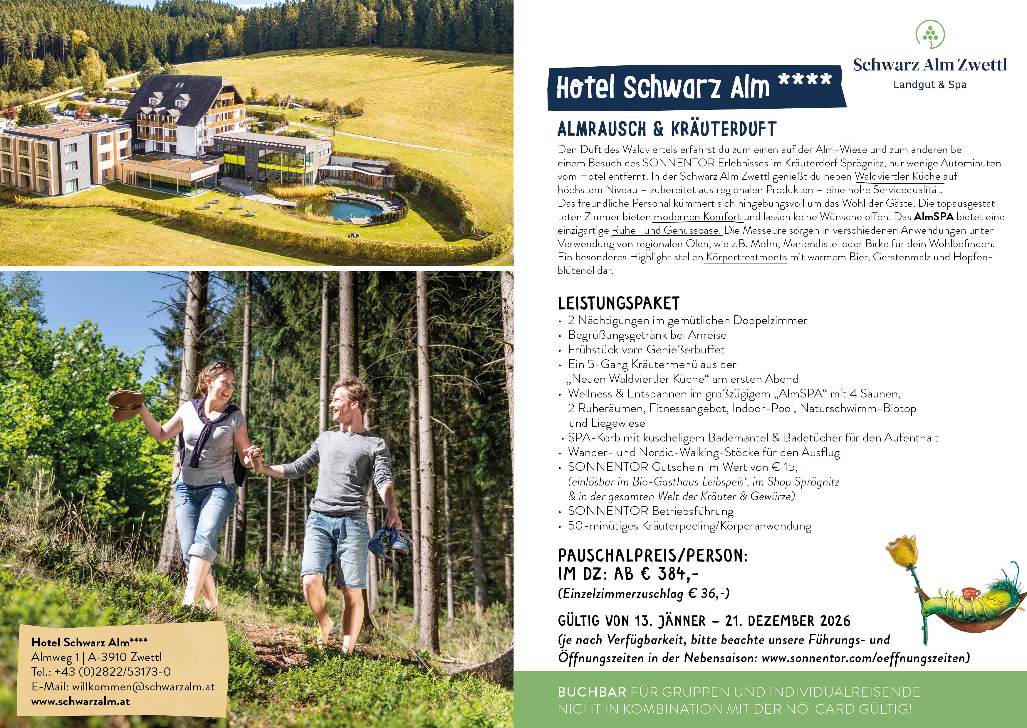 Erlebe das Waldviertel bei deiner Gruppenreise auf vielfältige Weise. Verbinde deinen Besuch bei SONNENTOR mit den besten Ausflugszielen der Region und sichere dir exklusive Vorteile. Stelle dir dein Programm ganz einfach im Baukastensystem zusammen – wähle eine Führung bei SONNENTOR und kombiniere sie mit einem Angebot unserer Gruppen-Package-Partner.