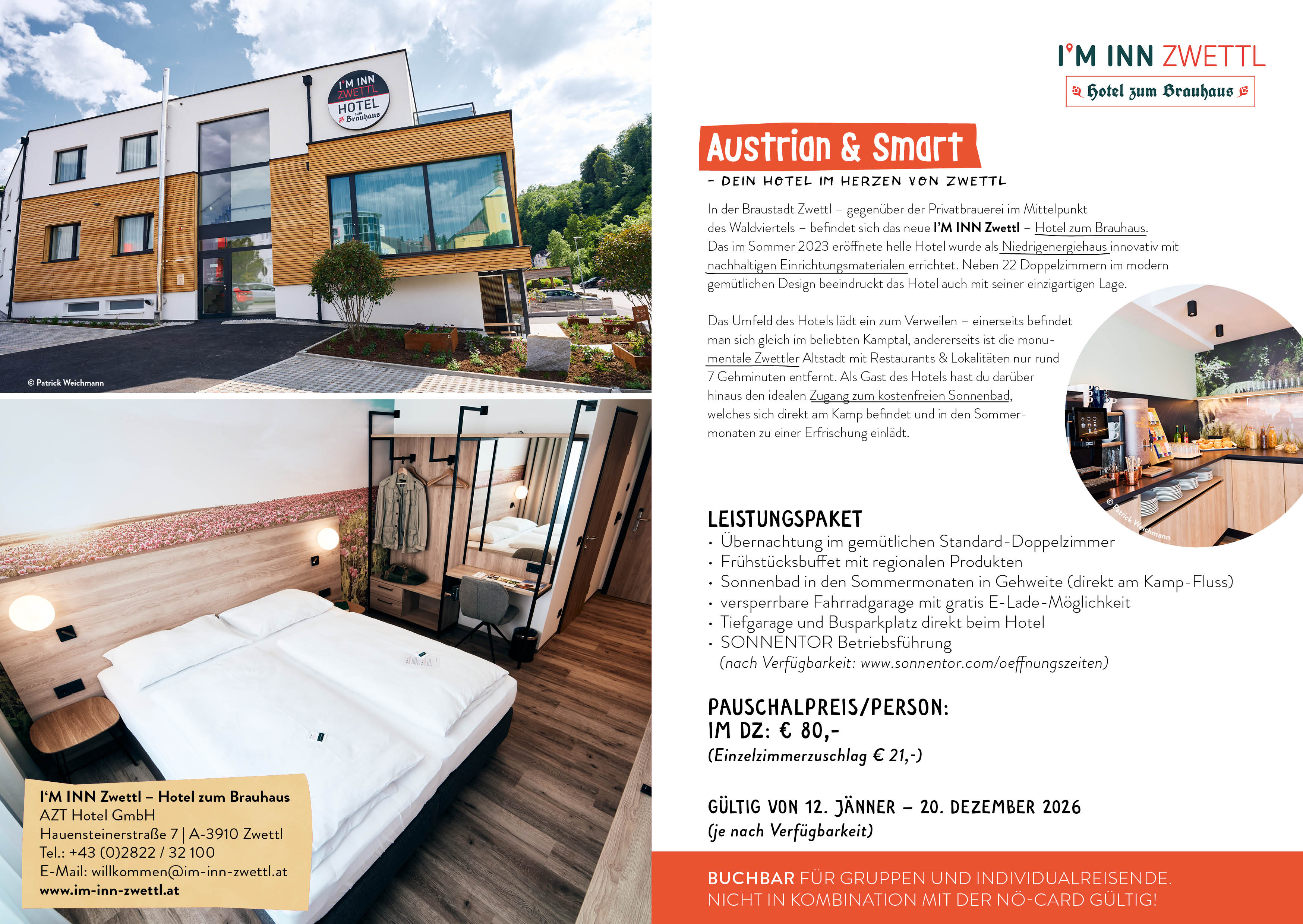 Du suchst eine Unterkunft im Waldviertel? Ob für Gruppen oder Einzelreisende – das Hotel Schwarz Alm, das Hotel I'M INN Zwettl und das Hotel Ottenstein bieten das passende Wohlfühl- und Verwöhnprogramm für deinen Aufenthalt.