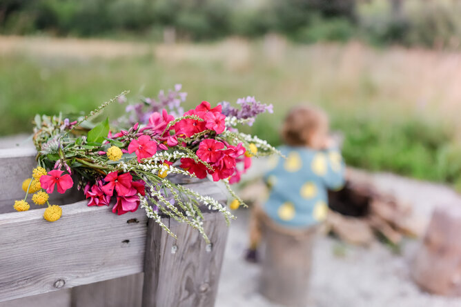 Neben einem Herbarium, unserem liebsten To-Go-Begleiter für Unterwegs, stellen Blumenkränze eine wundervolle Möglichkeit dar, um Blüten und Kräuter in Szene zu setzen. Sei es auf dem Kopf als Haarkranz oder auch als persönliches Highlight fürs Zuhause. Jeder Blumenkranz ist einzigartig und variiert je nach Jahreszeit und Gegend. Kinder lieben es, mit eigenen Händen etwas Schönes, Selbstgemachtes zu erschaffen, und für uns Erwachsene ist dieses DIY ein toller Achtsamkeitstrainer. Dank der gut beschilderten Schautafeln fällt das Bestimmen von Pflanzen auch den blutigsten Anfängerinnen und Anfänger der Naturkunde leicht.