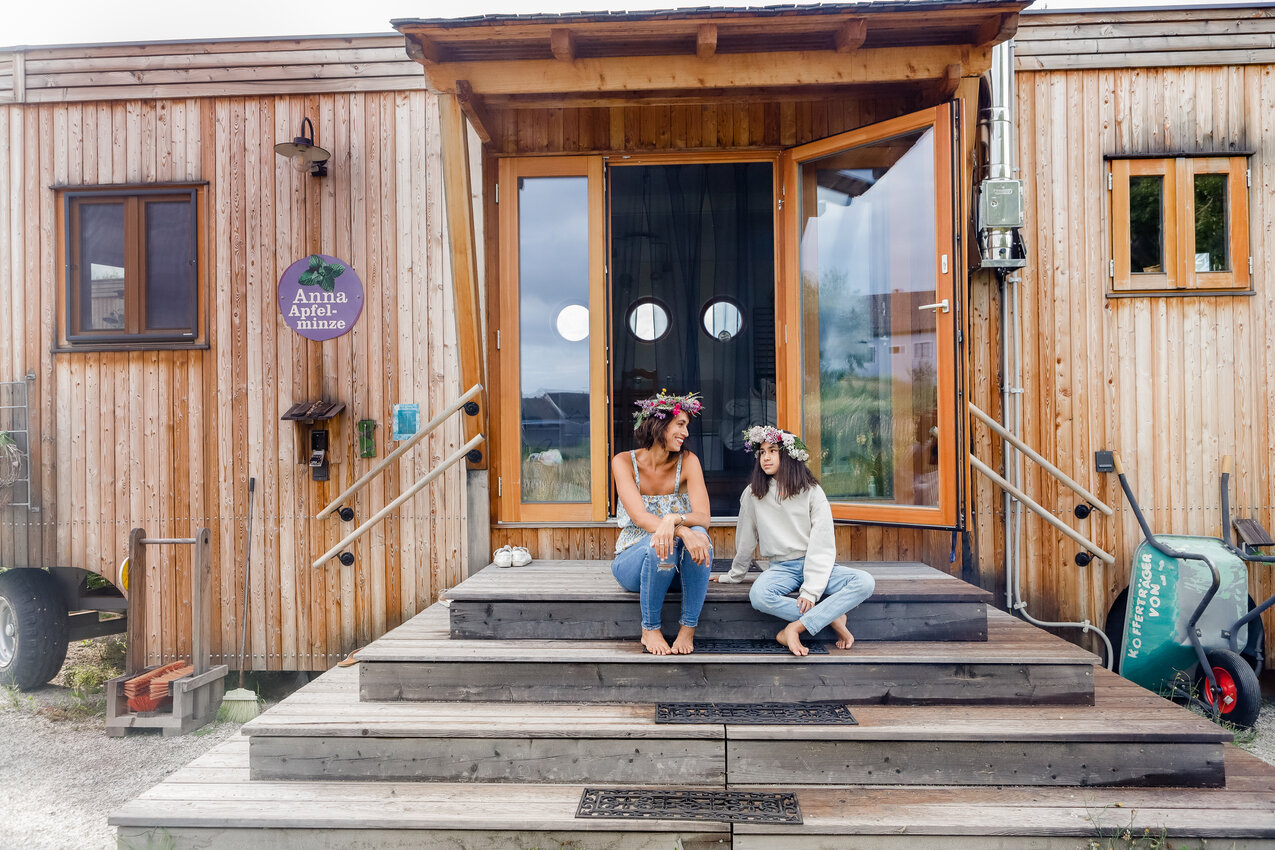 „Die sonnenliebende Apfelminze wird als Stimmungsaufheller eingesetzt, wirkt krampflösend und stärkt Nerven und Geist“, lese ich auf einem Bild im Land-Loft, unserem Zuhause für die nächsten Tage, welches an Gemütlichkeit nicht zu übertreffen ist. „Und ihr Duft erinnert an Äpfel!“; fügt das Fräulein hinzu und nimmt einen tiefen Luftzug. Das Loft empfängt uns mit dem intensiven Aroma der Apfelminze. Der Wohnwagen überrascht uns mit seiner Funktionalität und Detailliebe.