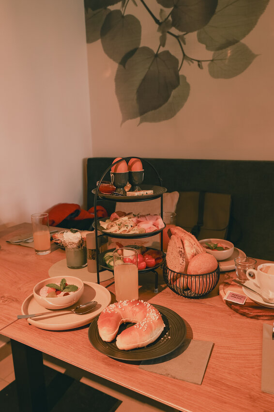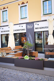 Gut erholt starten wir in den Sonntag und wollen nochmals den Vormittag hier in den Stadt-Lofts genießen. Diesmal entscheiden wir uns aber dafür nicht selbst das Frühstück zuzubereiten, sondern reservieren einen Tisch im Bio-Genusskaffeehaus Hölzl. Wir werden verwöhnt mit herrlichem Bio-Gebäck, weichen Bio-Eiern, Kaffee, Fruchtsäften, Joghurt mit Früchten und vielem mehr - und das nur wenige Meter von unserem Appartement entfernt. Hier fällt es einem wirklich leicht sich selbst zu versorgen, das Angebot ist unglaublich vielseitig!
