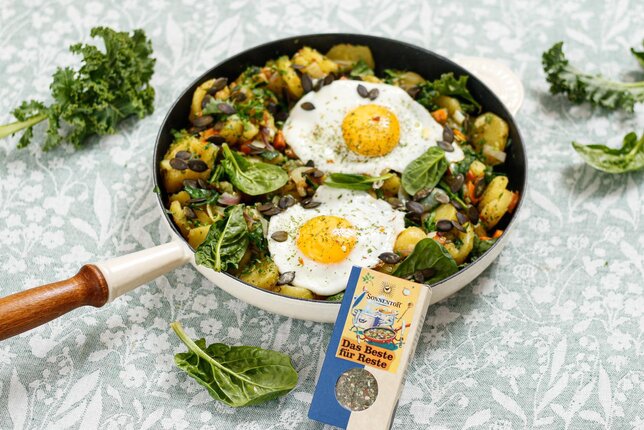 Im Mai erwartet dich das Veggie Gröstl mit unserem 'Das Beste für Reste' Gewürz.