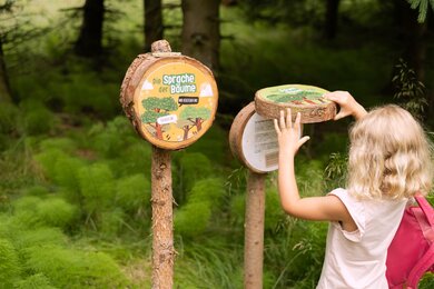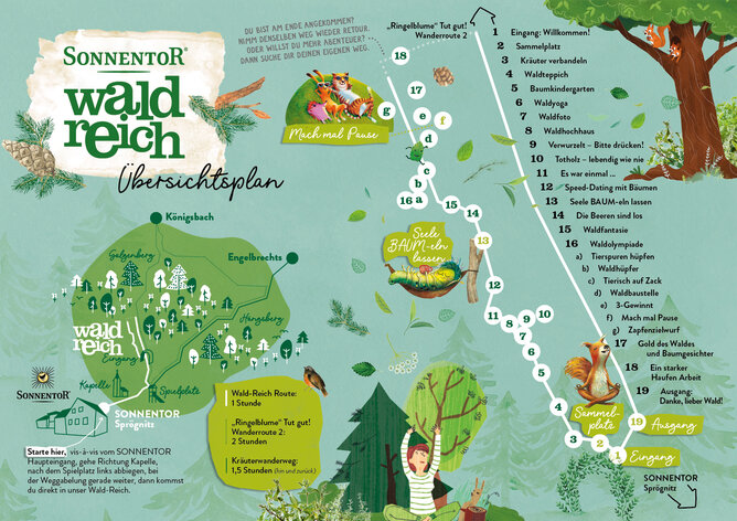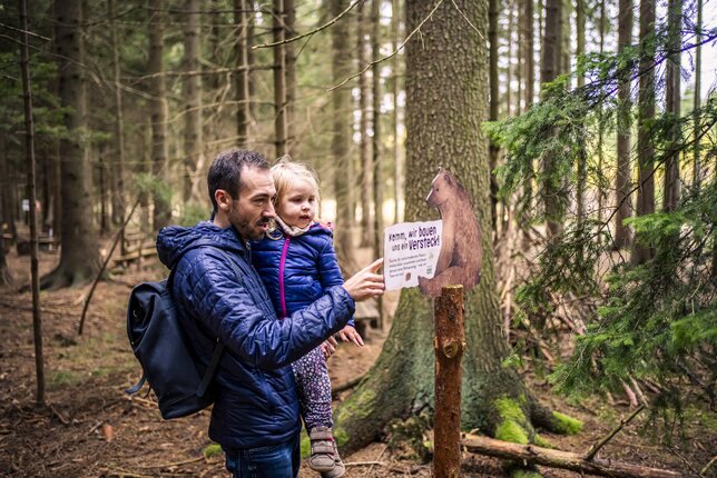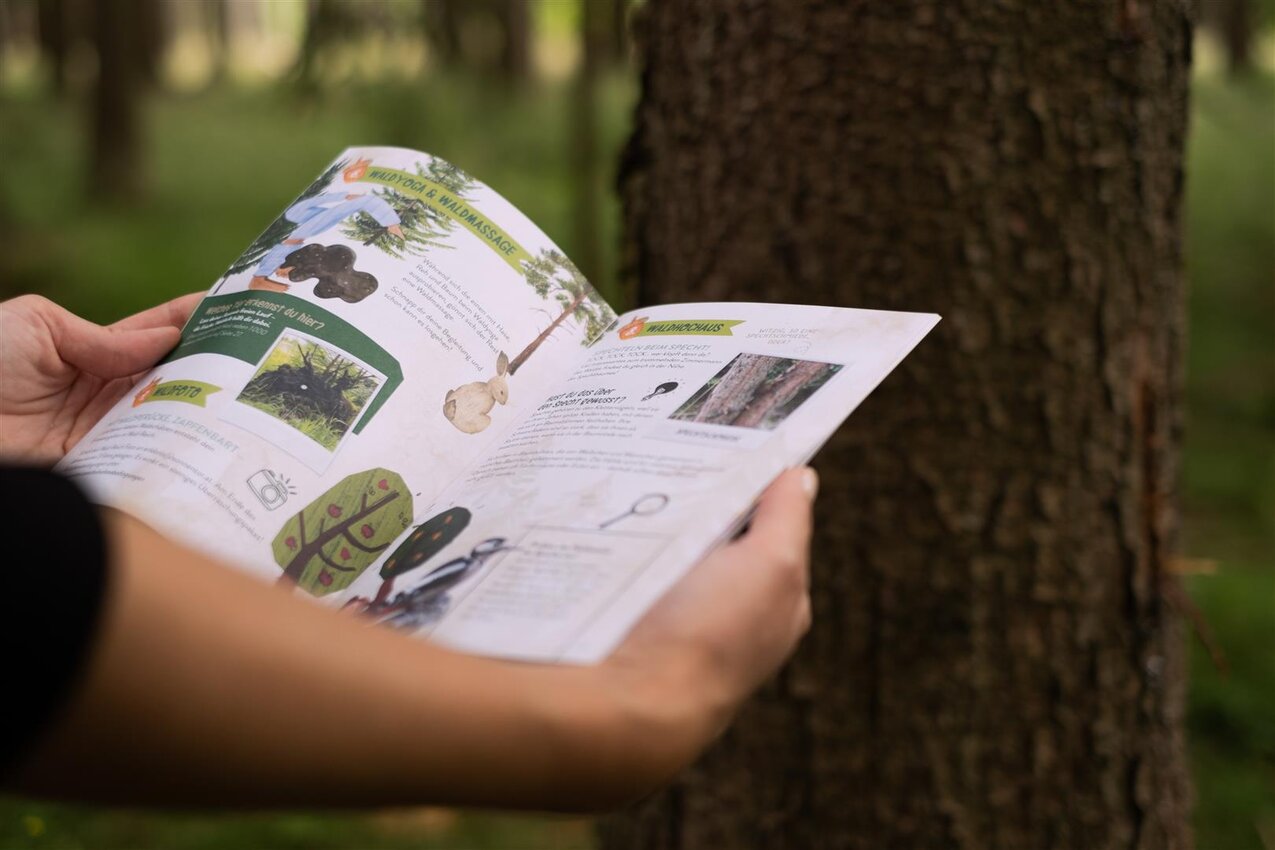 Unser Tipp: Hol dir vor deinem Weg ins Wald-Reich den Wald-Reich Folder. Er begleitet dich mit Hinweisen durch die einzelnen Erlebnispunkte, liefert Rezepte, spannendes Wissen und hilfreiche Tipps – und fordert dich mit kniffligen Rätseln heraus.