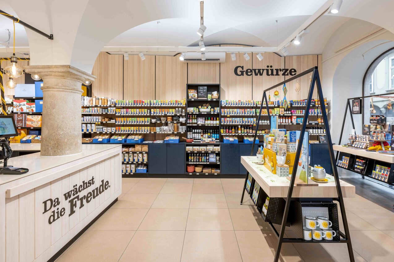 Im neuen Ladenbaukonzept fühlen sich unsere biologischen Schätze besonders wohl. Die individuellen Ladenbauelemente fügen sich perfekt in das Geschäftslokal ein - so sind das Gewölbe und die Säulen ideal integriert und das Einkaufserlebnis für unsere Kundinnen und Kunden noch besser sowie erlebnisreicher. Komm' vorbei und mach dir selbst ein Bild - das Team vor Ort freut sich schon, dich herzlich begrüßen zu dürfen!