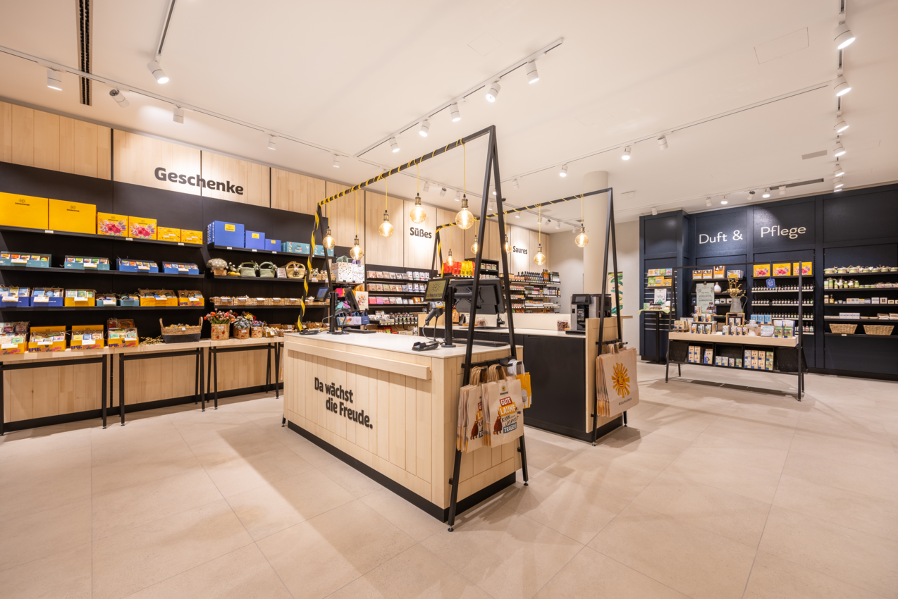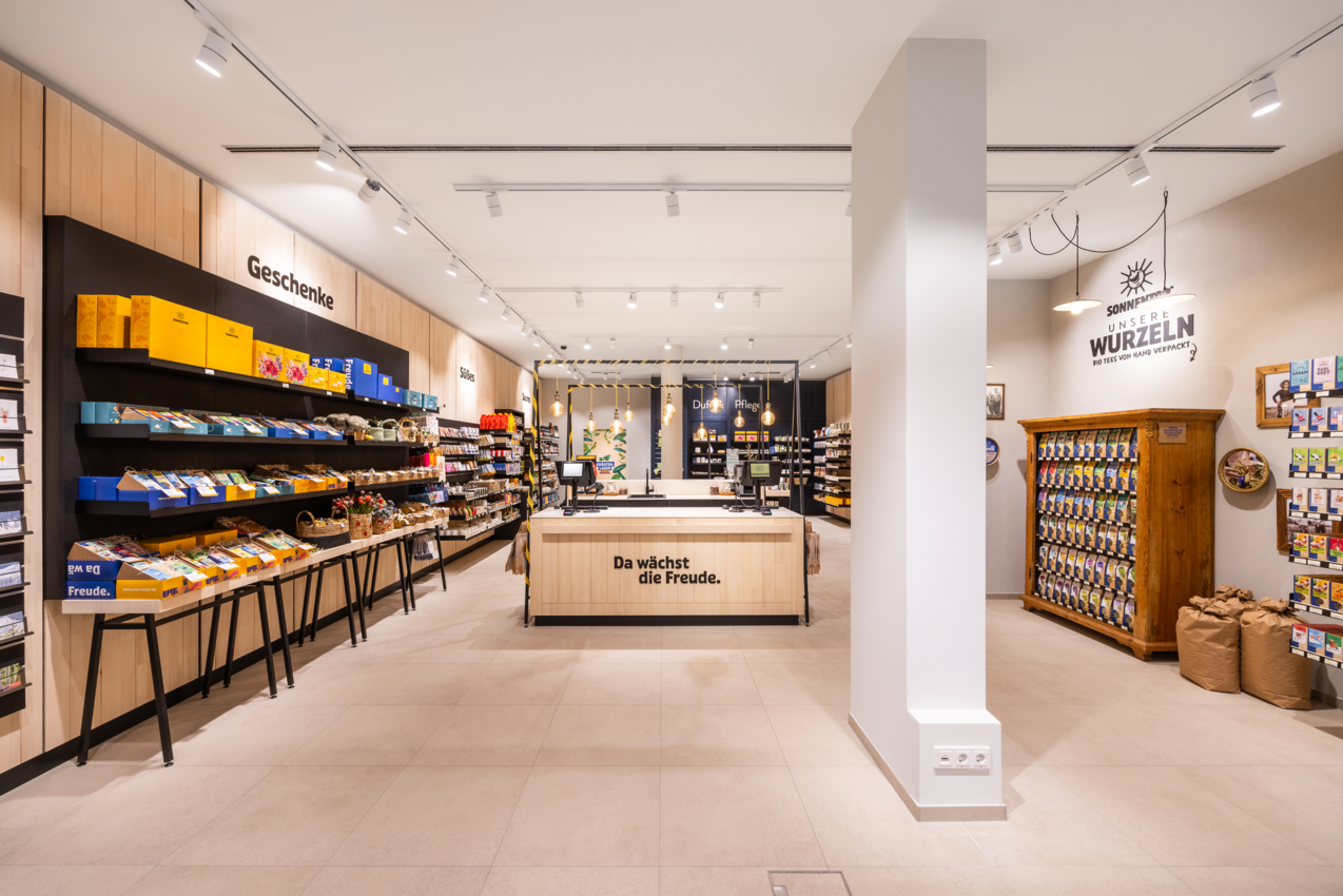 Innen überzeugt das SONNENTOR Geschäft mit einem ansprechenden Ladenbaukonzept – viel Holz und Naturelemente laden zum Verweilen ein. Unser freundliches, serviceorientiertes Team rundet unser sonniges Angebot ab. Mit einer kompetenten Beratung entstehen schöne Geschenkideen für jeden Anlass.